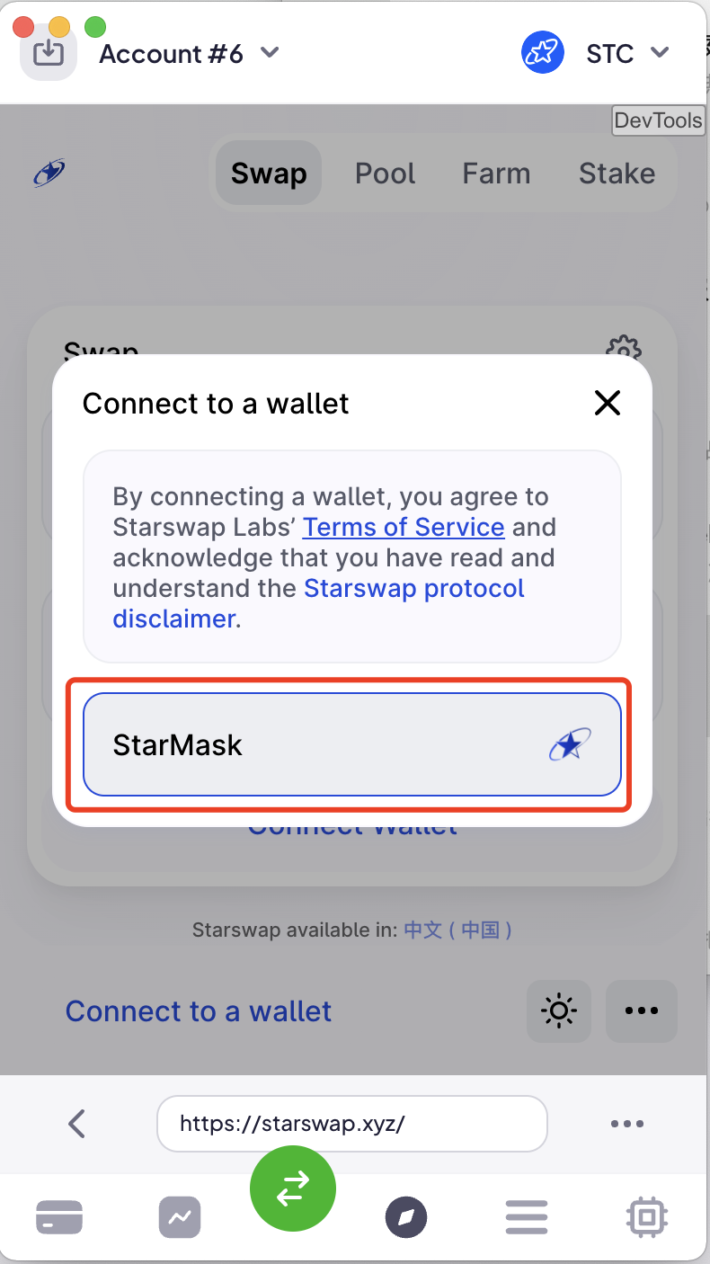 We can find a list of Dapps that supports Starcoin, let’s take Starswap as an example.